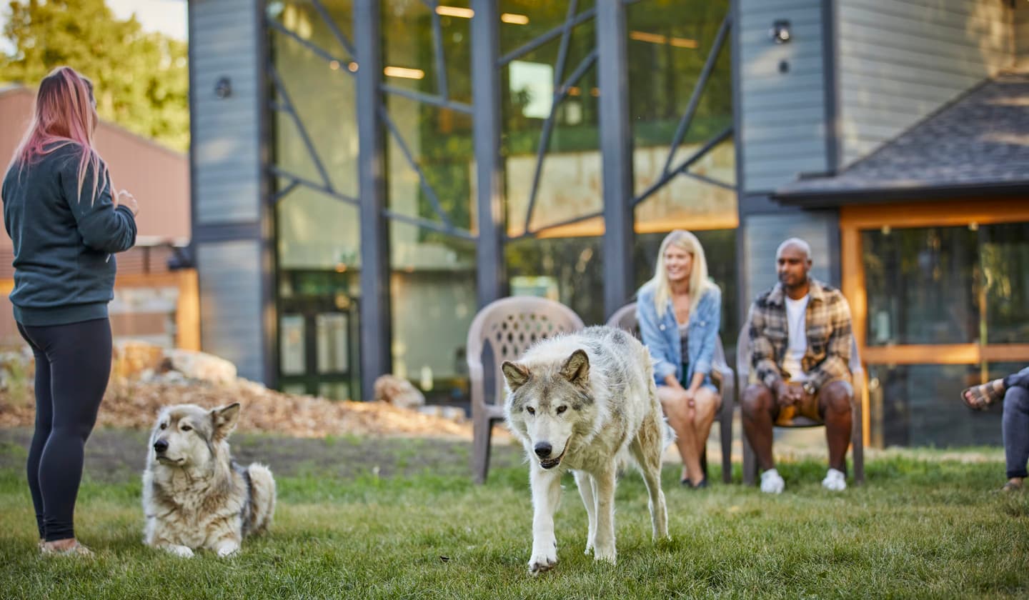 This tour is currently not wheelchair accessible. Walkers are also not permitted as these items can spook the wolfdogs. For accessible visiting options, please check out our Intro Tour or Sanctuary Walk.