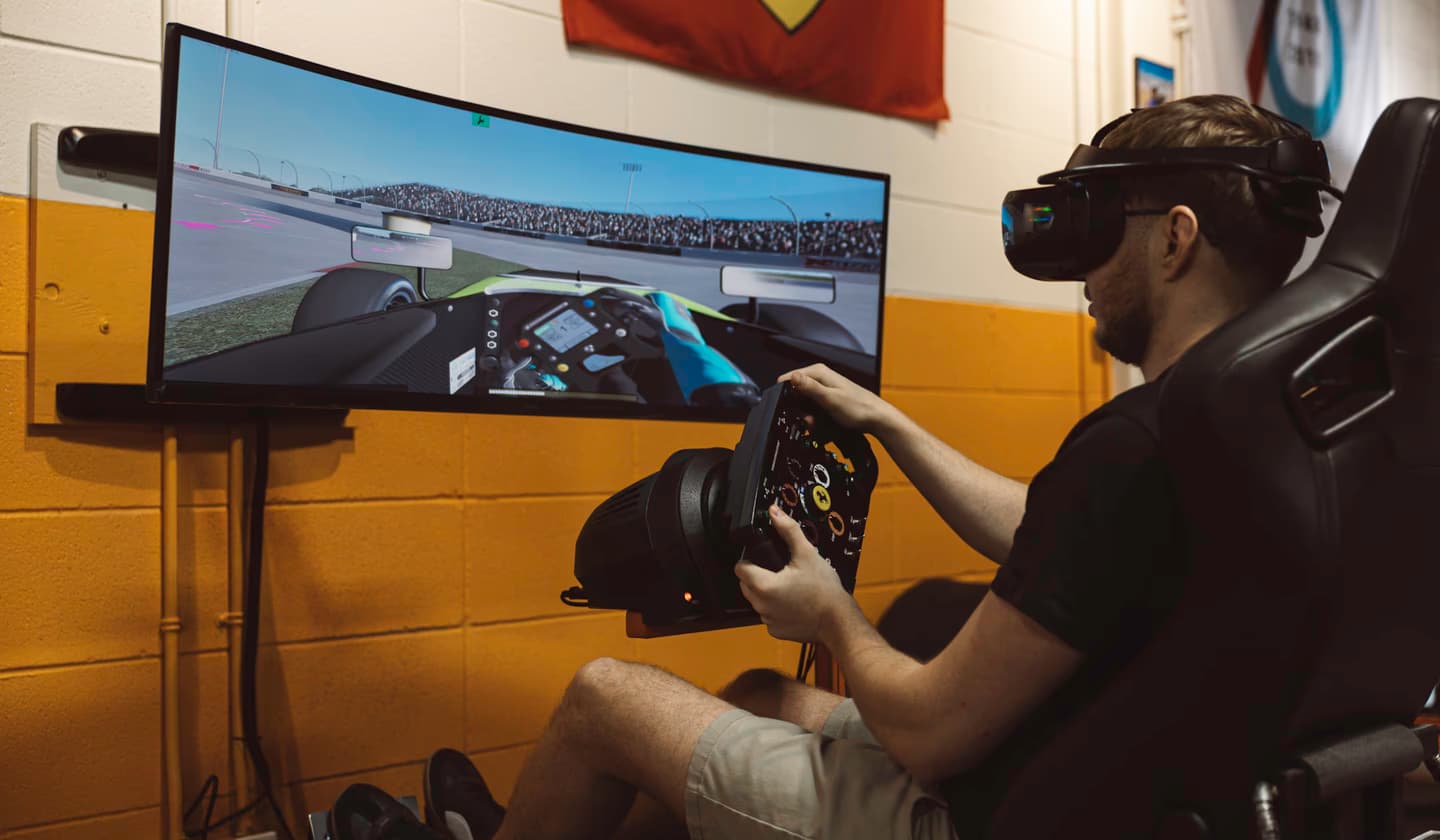 Wear comfortable clothing and clean indoor shoes. For golf simulators, golf attire is welcome but not required. For VR racing, closed-toe shoes are best.